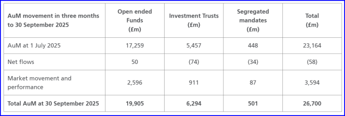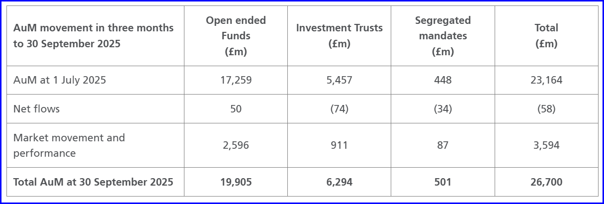 After a tough spell for active managers, the tide appears to be turning in Polar’s favour. The company’s latest quarterly update showed assets under management rising 15% over the three months to 30 September, hitting an all-time high of £26.7bn. That growth was driven by £3.6bn of positive fund performance and market movements, offset by modest net outflows of just £58m, a fraction of the £632m lost in the prior quarter.