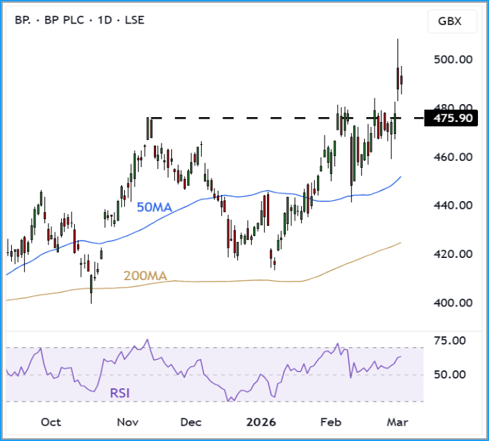 The technical picture has also started to turn more constructive. After spending several months consolidating beneath resistance, BP’s shares have now broken above the upper boundary of that range, suggesting the market is beginning to reprice the stock.