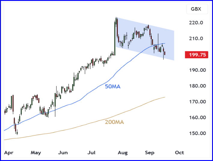 The market reaction to July’s news was unambiguous. A single session jump of around 10% is rare for BT and speaks to renewed confidence in the plan and in leadership depth. Since that burst, price has eased back in a steady fashion and remains well above the 200 day moving average. One year performance is strong, six month performance is strong, and the recent consolidation helps reset momentum without breaking the underlying uptrend.